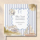 Apresentando nosso Livro de Convidados de Informações sobre Convidados Costeiros Azuis da Beach House. Apresentando a ilustração da cor d'água da caserna costeira com faixas azuis de marinho como fundo. Adequado para casa de praia de férias de aluguel ou casa de chalé costeira.