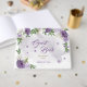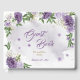 lindas flores lilás roxas e brancas com algumas folhas verdes, livro de convidado botânico.