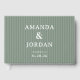 Este livro de visitas de casamento apresenta um design sofisticado com listras verticais em tons variados de verde, criando uma textura sutil e calmante. O layout é limpo e moderno, com tipografia serif elegante para os nomes e uma fonte sans-serif mais simples para detalhes adicionais, garantindo legibilidade e foco nas informações-chave. A estética minimalista transmite um ar de charme discreto, tornando-o perfeito para ocasiões formais como casamentos. Seus elementos personalizáveis permitem que você o personalize sem esforço, capturando a essência do seu dia especial.