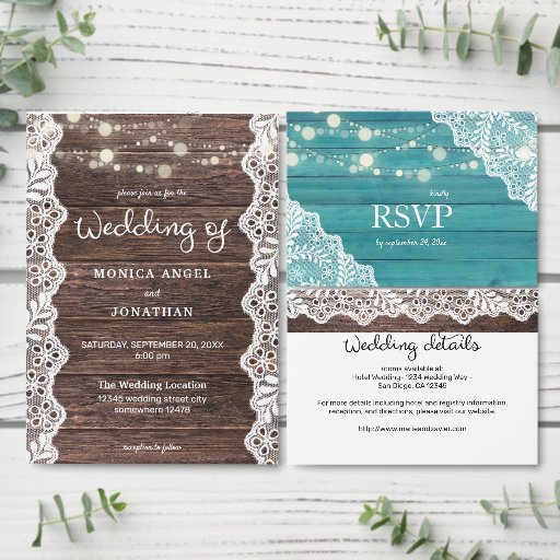 Carregar seu tema em todo o seu casamento com esta madeira, rendas e luzes de cordas tocam no seu livro de convidados de casamento.