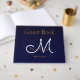 Livro De Visitas Marinho Escuro Azul, Dourado Monograma Branco Flor