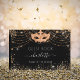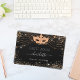 Um livro de hóspedes para uma festa de aniversário feminina e glamourosa Doce 16, mascarada. Um fundo na moda preto com poeira brilhante dourada falsa e uma máscara de mascarada. Adicione seu nome, texto. Personalize e adicione seu texto na coluna.