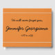 Este elegante funeral ou livro de convidados memoriais mostra a mensagem "Nunca te esqueceremos", juntamente com um nome personalizado, e datas de nascimento/morte. Poderia ser usado para registrar desejos simpáticos aos familiares e amigos de alguém que morreu recentemente. Tem um fundo laranja.