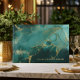 Seus sonhos estão finalmente se tornando realidade e este design abstrato de tinta alcoólica que flui define o tom perfeito para o maravilhoso casamento que você sempre imaginou. Em tons de verde-vidro-marinho a esmeralda-escura, acentuados com ouro brilhante, a coordenação do "Livro de Convidados" aqui mostrado fornece uma modelo para adicionar facilmente suas iniciais e data do casamento. Procure ID988 para ver outras peças neste conjunto de casamento coordenado.