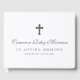 Livro de convidados do serviço de memória em branco com texto de cinza e uma cruz. Adicione o nome do seu amado em um roteiro maravilhoso.