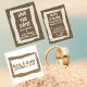 A letra maiúscula no belo bege que era tão popular nos anos 90 é apoiada por um marrom de areia molhada para uma design de casamento informal.