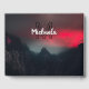 Fotografia paisagística de um pôr do sol irreal tirada no lago Lago di Fusine, Itália. A cor vermelha é um pouco exagerada, mas parada na vida real ela realmente sentia assim. Em pouco tempo o sol se espalhou pela neblina e tão rápido desapareceu. Com um monograma personalizável no céu.