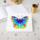 Arco-íris, realista, desenhado artisticamente, borboleta pavão de cores brilhantes com asas detalhadas texturizadas sobre fundo branco. Borboleta-arco-íris.