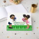 Livro de visitas para chá de bebê revelação de gênero de futebol com linda bebê negra étnica e bebê menino vestidos com equipamentos de futebol em um fundo de campo de futebol. Este livro de visitas para chá de bebê de futebol é facilmente personalizado para o seu evento, basta adicionar seus detalhes no estilo de fonte de sua escolha. Você também pode alterar as palavras no banner.