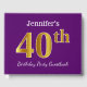 Este design de livro convidado apresenta o número normal "40º" com uma aparência falsa em ouro. Ele também apresenta um nome personalizado e um fundo de cor roxa. Pode ser usado em uma festa para alguém comemorando seu quadragésimo aniversário. [~Z0000057]