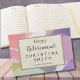 Procurando uma maneira única e na moda para celebrar uma aposentadoria especial? O nosso Livro de Convidado do Partido da Reforma Primavera do Pastel, moderno estético, é a escolha perfeita! Apresentando uma personalizável arte pastel de cor d'água abstrato, este livro de hóspedes adiciona um toque de elegância moderna a qualquer celebração de aposentadoria. Ideal para ela, professores, ou colegas de trabalho, proporciona um belo espaço para amigos e colegas deixarem mensagens e desejos sinceros. Comemorar este marco com uma guardiã que captura a alegria e a gratidão da ocasião. Crie memórias duradouras personalizando seu livro convidado hoje e torne a celebração da aposentadoria realmente inesquecível!