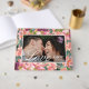 Pêssego bonito e vibrante e cor d'água rosa florais florais e verde moldam a foto do casal feliz. Escrito elegante de amor, data de casamento, e monogramas são uma bela camada nesta design de tendências. A coordenação de convites e acessórios pode ser encontrada nesta coleção.