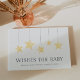 Convide os convidados do chá de fraldas a compartilhar seus desejos e sabedoria com este doce livro de hóspedes com cinco estrelas penduradas em amarelo macio com "Desejos por Bebê" embaixo. Personalize o cobrir e a coluna com o nome do convidado de honra e a data de chá, ou a sua escolha de texto personalizado. A coluna é mostrada em verde-menta neutro; altere a cor da coluna clicando em "personalizar" e selecionando a sua escolha de cor.