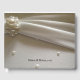 Este adorável livro de convidados mostra uma imagem de tecido de marfim e pérolas. Observe que esses são efeitos de design—não há tecido ou pérolas reais neste livro convidado.