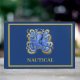 Barco Náutico ou Casa de Praia, livro de convidados personalizado do Octopus. Na moda e chic perfeitos para o seu negócio de luxo de barco ou casa de praia. Um polvo elegante num fundo azul.