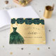 Para uma Quinceañera, 15 festa de aniversário. Um fundo ouro com brilho de ouro falso, um vestido verde e rosas verdes, florais. O nome é escrito com um moderno estilo escrito à mão. Personalize e adicione um nome e data. Spine: adicione seu texto.