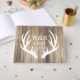 Livro de hóspedes do casamento russo, com cervos brancos, churrascos, silhuettes, armando suas iniciais de casal e a data de casamento com um design de fundo de madeira de celeiro leve.