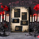 Capture as memórias do seu dia especial com o nosso intricadamente desenhado Livro de Convidados da Recepção de casamento Romance Gótica Negra. Este magnífico livro de hóspedes apresenta um fundo negro profundo adornada com um círculo de filigrana de ouro, rosas de ouro elegantes, e uma borboleta delicada. No seu centro está um impressionante bolo de casamento preto de quatro camadas, maravilhosamente decorado com rosas vermelhas vibrantes. A cena é iluminada por um candelabro ornamentado com três velas luminosas à esquerda e uma vela solteiro acesa à direita, criando um ambiente dramático e romântico. Perfeito para o seu casamento com o tema gótico, este livro de hóspedes permite aos seus hóspedes deixar as suas mensagens e desejos de felicidade num espetacular manto. Personalize com seus nomes e sua data especial de casamento para criar uma adição única e memorável à sua recepção de casamento. Assegure-se de que as memórias dos seus hóspedes sejam lindamente preservadas com o nosso Livro de Convidados do Casamento Gótico, uma adição essencial e encantadora à vossa celebração inesquecível.