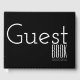 Uma bela fonte em negrito diz "livro de hóspedes" e tem um modelo abaixo para a data da sua importante função ou evento. A cor do fundo pode ser alterada de preto para qualquer uma das suas opções.
