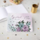 Livro de hóspedes único, com romântico roxo empoeirado, flores azuis e folhas verdes. PARA MAIS PRODUTOS CORRESPONDENTES, clique na coleção acima ou entre em contato comigo.