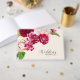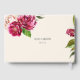 Um floral brilhante e ousado de rosas em tons de burgundy e creme é o ponto focal de muitas das peças deste suite de casamento que também contém textos elegantes e layouts modernos de design. O livro de hóspedes personalizado mostrado aqui permite que você edite facilmente os nomes da noiva e do noivo e a data do casamento usando o modelo fornecido. Procure ID584 para ver todas as peças correspondentes neste belo conjunto de casamento.