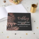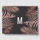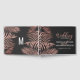 Folhas de fronte de palmeiras de ouro rosa, elegantes, quic e modernas praias tropicais imprimiram folhas de fronte de, em preto, com tipografia falsa de sequin de rosa, guestbook de casamento. Este design clássico e sofisticado é perfeito para o casal de competição de tendências e na moda. Personalize com sua própria mensagem na frente, assim como um monograma personalizado inicial no verso. Todas as impressão de fotos.