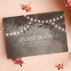 Capture memórias queridas do seu casamento rústico com este livro de hóspedes encantador. Uma silhueta majestosa de árvore enfeitada com luzes cintilantes contra um pano de fundo marrom quente define a cena para os desejos sinceros de seus convidados. Este livro de hóspedes tornar-se-á um bem-estar tesouro, lembrando-vos do amor e alegria partilhados no vosso dia especial.