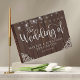 A Corda de Madeira Rústica Luz o Livro de Convidados Foto de Casamento com Formas Rústicas, com cordas de luz brilhantes e colar nos cantos inferiores. Adicione sua foto e detalhes para um lindo e romântico guia!