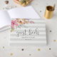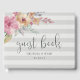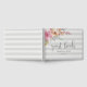 Convide seus convidados de casamento para compartilhar seus desejos e sabedoria com este livro de hóspedes de cinza pálida tênue, embelezado com flores cor d'água rosa e pêssego. O design striped apresenta "livro de hóspedes" em letra de escrita caligráfica manuscrita, com seus nomes e data de casamento abaixo. Um buquê exuberante de cor-de-rosa-pincel e cor-de-água verde salgada florescendo do canto completa a aparência. Personalize a coluna da cinza, bem como o texto personalizado escolhido.