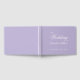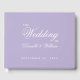 Um simples livro de casamento com uma cor moderna, lavanda (roxo claro) e caligrafia branca elegante.