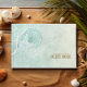 Uma textura aquosa nos tons macios do mar e da areia é o fundo de elementos marinhos, como o peixe-estrela e as conchas, que são aperfeiçoados com ondas de espuma marinha para criar os pedaços desta suíte de casamento. O Livro de Convidados do casamento mostrado aqui mostra tudo acima, além de uma modelo para adicionar facilmente sua própria mensagem, nomes e data do casamento. O texto opcional do "Livro de Convidados", em uma fonte moderna e aberta, tem um acabamento de folha de ouro. Procure ID837 para ver todas as peças de coordenação neste conjunto.
