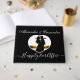 Simples preto e branco, elegante e moderno Livro de noivados. Livro de convidados elegante com os seus nomes e a data do casamento. Branco com fundo preto. Personalize a coluna do seu livro de convidados de casamento com o nome da noiva e noiva e a data do casamento. A parte de trás do livro de hóspedes apresenta a sua foto favorita. . Com uma foto personalizada em forma de coração no cobrir frontal.