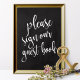 Um sinal de casamento elegante e moderno, apresenta o texto "por favor, assine nosso livro de visitas" em uma fonte de letra extrovertida, a textura da pincelada adiciona um sentimento espontâneo e divertido. A cor de fundo pode ser personalizada de acordo com as suas necessidades e preferências, por favor, entre em contato comigo se tiver algum pedido especial.