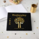 Faça com que a família compartilhe as memórias do seu encontro mais recente com um livro de convidados com um design de mãos, na frente e no verso, segurando as folhas de ouro trabalho de arte num fundo preto. Personalize todo o texto ou remova qualquer texto. Mostra o livro anualmente para que as memórias possam ser compartilhadas ano após ano.