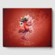 Steampunk Flamingo - Trabalho de arte Digital Fantasia com Rosas. Um trabalho de arte digital único que combina estética steampunk com elegância exótica: um flamingo vermelho vibrante vestindo um chapéu e óculos, cercado por rosas e grandes flores cor-de-rosa. O fundo vermelho profundo com padrões florais e bolhas flutuantes adiciona profundidade mágica. Perfeito para fãs de galos, amantes de arte de fantasia, e qualquer um que goste de designs extravagantes e atraentes.