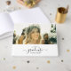 Comemore seu formando com este lindo livro de fotos convidado personalizado com caligrafia de roteiro e tipografia moderna mostrando seu nome de formando, escola e classe ao lado de sua imagem de mais velho favorita.