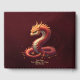 The golden serpent dragon. The dragon's body is covered with intricately crafted scales that shimmer in a harmonious interplay of red, gold, and cream tones, lending the creature a vibrant texture. The dragon's head is reminiscent of an eagle: powerful, majestic, and with a pointed beak symbolizing power and wisdom. The piercing eyes are an intense blue-green.