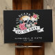 Legal até a morte, fazemos parte do livro de casamento com crânios e rosas de aquarela. Fundo preto. Personalize-o com os detalhes do evento.