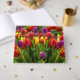 Este belo design apresenta uma imagem de alta definição de tulipas em vários tons brilhantes de vermelho, roxo e amarelo. As tulipas cresceram originalmente na Ásia Central e foram vistas como um símbolo do Império Otomano, no entanto, no século XVI elas foram importadas para a Europa e logo se tornaram altamente valorizadas como um bem valioso. Eles se associaram à Holanda, onde muitas flores foram cultivadas e comercializadas nos mercados. Muitos híbridos e cultivares bonitos, em todos os tipos de cores maravilhosas, foram criados desde então.