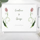 Uma tulipa cor-de-rosa solteiro se destaca contra um fundo branco, criando um design simples e elegante. Os tons cor-de-rosa suaves trazem uma sensação de romance e graça. Perfeito por adicionar um toque gentil e moderno a qualquer celebração de casamento.