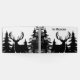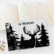 Veado emerge de pinheiros e é cercado por flores silvestres em design simples da vida selvagem.