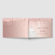 Um livro de hóspedes para uma festa feminina e glamourosa da Quinceañera. Um fundo rosa de gradiente dourado com brilho de fuax dourado rosa, aparência de pingar tinta. Decorado com um vestido, vestido. O texto: O nome é escrito em ouro rosa escuro com uma escrita de estilo moderna, escrita à mão. Personalizar e adicionar nome. Espinha: modelo para o seu texto.