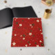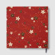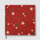 Red background with delicate wavy lines, adorned with black and white flowers in a scattered pattern, exuding a sense of elegance and harmony.