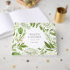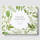 Convide seus convidados de casamento para compartilhar seus desejos e sabedoria com este livro de hóspedes botânico com seus nomes e data de casamento cercado por uma coroa de folhas botânicas de cor aquática verde. Personalize a coluna com texto personalizado adicional em branco na verde-férn. Projetado para coordenar com nossa coleção de casamento Wild Meadow.