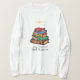 Uma pilha de livros coloridos de água na forma de uma árvore de Natal tocada com uma estrela feita de lápis faz uma camiseta de presente de Natal perfeita e perfeitamente adorável para seu professor favorito, bibliotecário ou amante de livros, pronto para personalizar com um nome ou a mensagem de sua escolha.