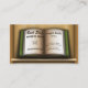 © Sunny Mars Designs. Livro sobre Cartões de visitas da Livraria Wooden - Este modelo de cartão de negócios de compro de livro impresso personalizado apresenta uma ilustração vetorial de um livro verde de capa dura sobre uma prateleira de compro de livro de madeira e um sinal de placa metálica no verso. Os cartões de visitas são totalmente personalizáveis. Digite seu próprio nome e detalhes comerciais.