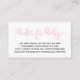 Um cartão de inserção de solicitação de livro para o chá de fraldas com poema: "UMA PEQUENA SOLICITAÇÃO, ESPERAMOS NÃO MUITO DURO POR FAVOR TRAZER UM LIVRO EM VEZ DE UM CARTÃO QUE ELES CHERARÃO O LIVRO, BEM AMADO OU MARCA NOVO POR FAVOR ASSINE O DENTRO COM UMA MENSAGEM DE VOCÊ!"