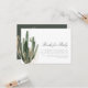 Este chá de fraldas para cartão de bebê contém um cacto de aquarela e uma fonte elegante de script. Este é o elogio perfeito ao convite de chá de fraldas correspondente para o seu chá de fraldas boêmico, verão ou jardim.