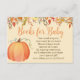 Cartões de solicitação do livro de chás de fraldas de outono. Perfeito para um chá de fraldas temático do outono. Celebre a alegria da nova vida com um belo cartão de pedido de livro de chás de fraldas de abóbora! Apresentando ilustrações vibrantes de folhas coloridas e abóboras, este convite é perfeito para os futuros pais amantes do outono. Um pequeno pedido, que não será muito duro. Por favor, traga um livro em vez de um cartão. Ao assinar o seu livro, recordaremos e compartilharemos seu presente especial mesmo quando você não estiver lá!