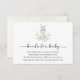 Um cartão de inserção de solicitação de livro para o chá de fraldas. Apresentando coelho e poema da floresta: "UM PEQUENO PEDIDO, ESPERAMOS NÃO MUITO DURO POR FAVOR TRAZER UM LIVRO EM VEZ DE UM CARTÃO QUE ELES CHERARÃO O LIVRO, BEM AMADO OU MARCA NOVO POR FAVOR ASSINEM O DENTRO COM UMA MENSAGEM DE VOCÊ!"